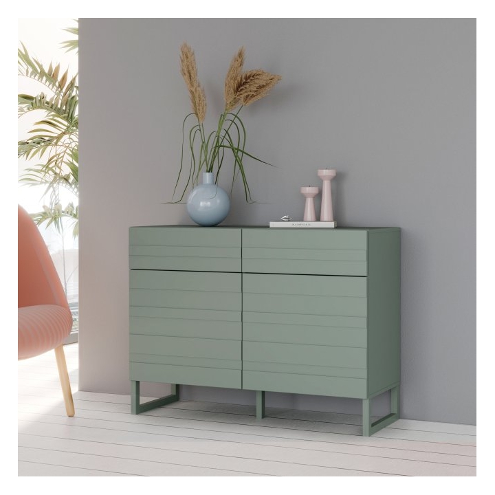 The chest of drawers is equipped with two capacious drawers and two lockable cabinets, which makes it easy to organise clothes, documents and other necessary items. The top can serve as a place for decorations, books or lighting. The push to open system used eliminates the need for handles, emphasising the modern character of the furniture and ensuring comfortable use.