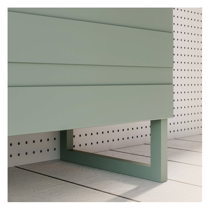 The solid construction is based on a durable chipboard carcass and PVC fronts, which guarantees durability and resistance to everyday use. The edges are protected by ABS, which protects against mechanical damage. The MDF legs add visual lightness to the chest of drawers and emphasise the precise finish of the whole.