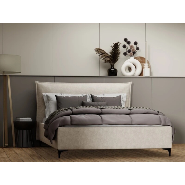The Helsingborg Forte upholstered bed, measuring 162×219 cm, is designed for a 120×200 cm mattress. The body with 5 cm thick and 30 cm high sides is supported by 13,5 cm high legs, which ensures stability and free access under the furniture. The headrest measures 100 cm, allowing comfortable support. Inside the frame there is a top-opening bedding container, equipped with a lifting mechanism for easy lifting of the sleeping surface. It comes with a frame matched to the structure, providing proper support for the mattress. The storage compartment allows you to store quilts, pillows and other textiles, keeping your bedroom tidy. The upholstered surface of the frame is resistant to daily use. The model is sold without a mattress, allowing you to choose the firmness and type of filling individually.