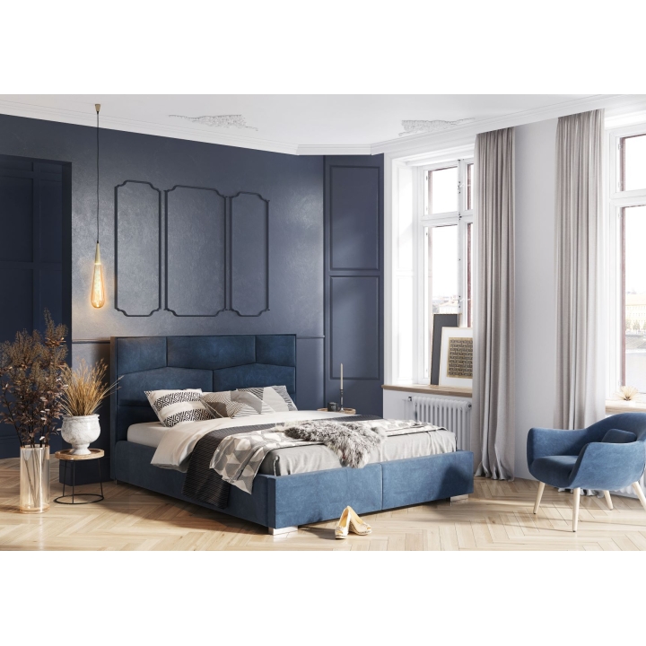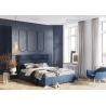 The Nellur Forte upholstered bed in 159×218 cm size is designed for a 140×200 cm mattress. The solid frame with 8 cm thick and 30 cm high sides rests on 4,5 cm high legs, which ensures stability and makes cleaning under the furniture easy. The 111 cm high headrest creates comfortable support in the sitting position. Under the sleeping surface there is a capacious bedding storage compartment that opens from the top, equipped with a lifting mechanism for easy operation. It comes with a frame matched to the structure, which supports the mattress over the entire surface. The storage compartment allows you to store quilts, pillows or seasonal textiles, helping to keep your bedroom tidy. The upholstered frame is durable, aesthetically pleasing and easy to clean. The model is supplied without a mattress, giving you the opportunity to choose one individually.