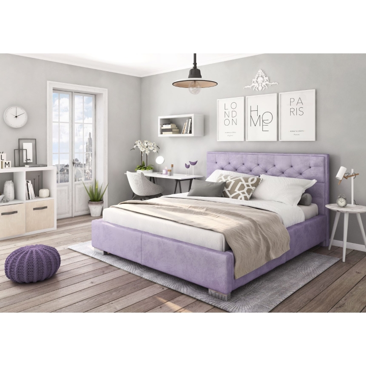 The 159×218 cm Lanciano Forte upholstered bed offers a sleeping surface of 140×200 cm and a spacious bedding storage compartment. The lifting mechanism works lightly, allowing comfortable use of the storage compartment. The 8 cm thick and 30 cm high sides ensure the durability of the structure, while the 4.5 cm legs make it easy to clean under the bed. The 97 cm high headboard provides comfortable support when resting or reading. A matching frame is included, and the lack of a mattress in the set gives you the freedom to choose the best option. The upholstered frame is pleasant to the touch and gives the interior a warm, elegant look.