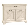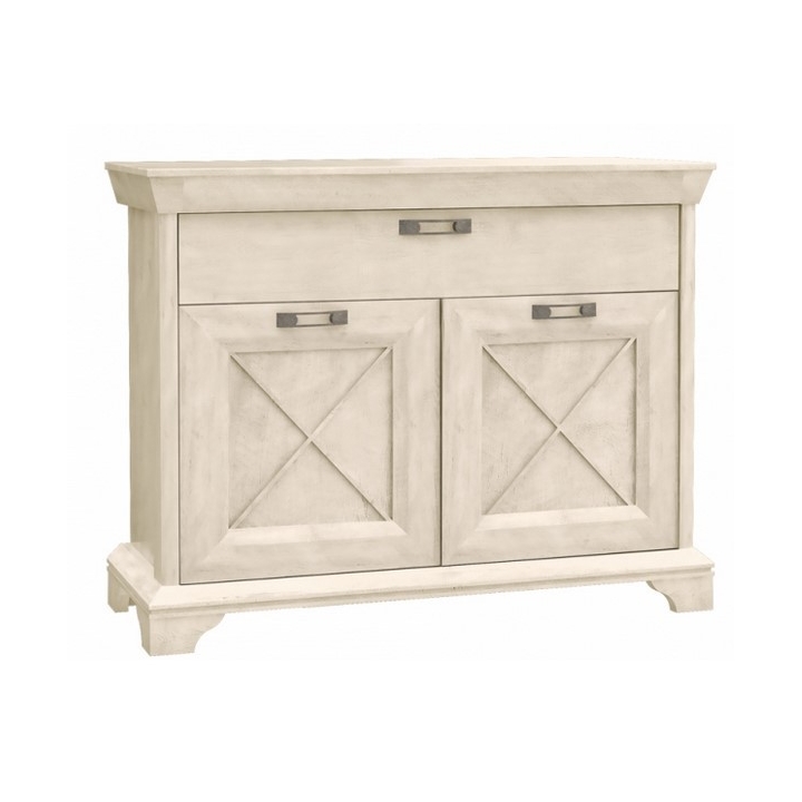 The Kashmir collection chest of drawers model KSMK223 by Forte is a Provençal-inspired elegant chest of drawers for the dining room or living room. If you like French classics and want to introduce elegance, brightness and elegance into your interior, choose furniture from the Kashmir collection. The chest of drawers features muntins on the fronts, which are characteristic of the collection, as well as a stylised crown and plinth. The capacious cabinet and drawer will allow you to organise home accessories such as table textiles and decorations. The light, unique colour of the furniture has been achieved through the use of a white pine decor.