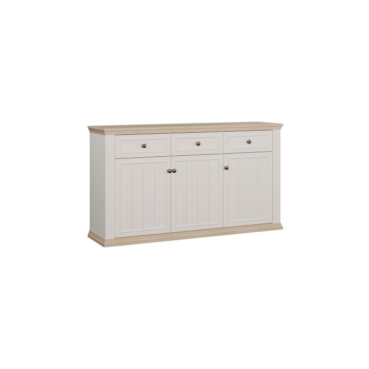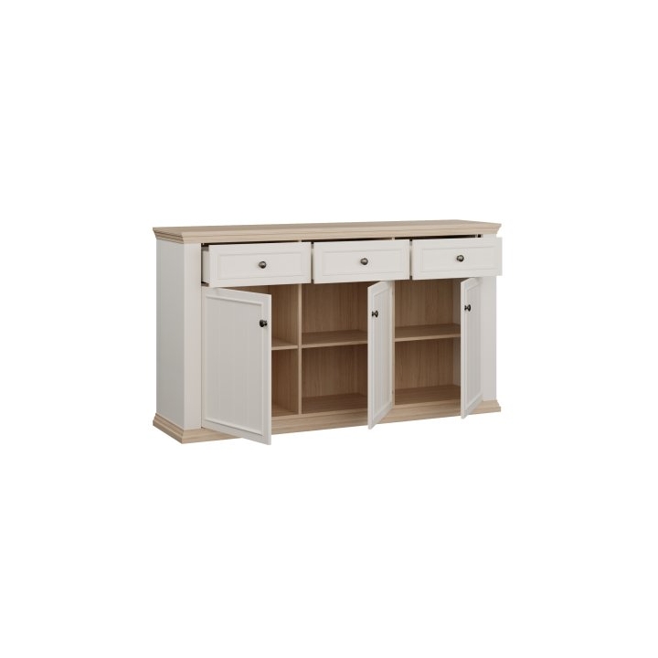 The design refers to Provençal-style aesthetics and is available in two colour variants, allowing it to be matched easily with different interior arrangements. The overall look is completed with sturdy metal handles, adding a subtle decorative accent.