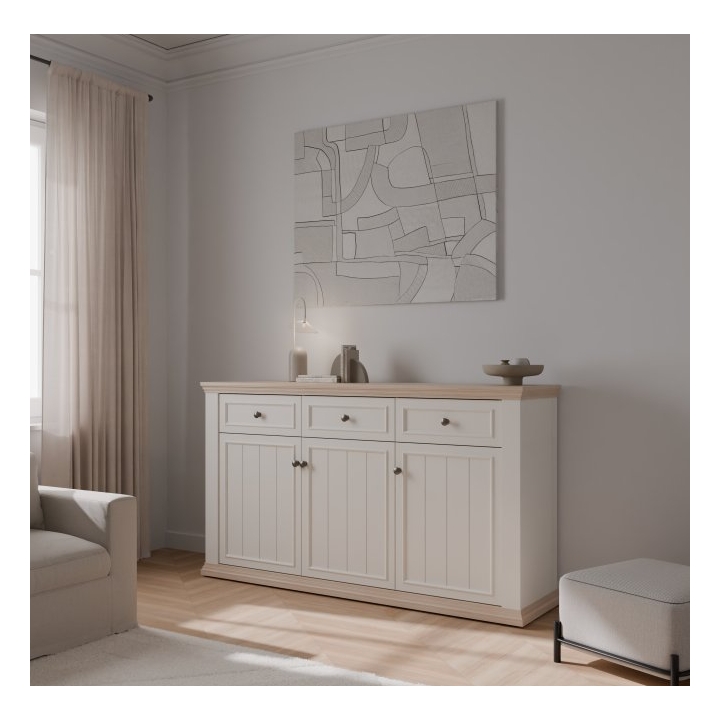 The product is part of a coordinated furniture collection, making it easy to create a consistent interior design. The sideboard is supplied flat-packed and intended for self-assembly according to the included instructions.