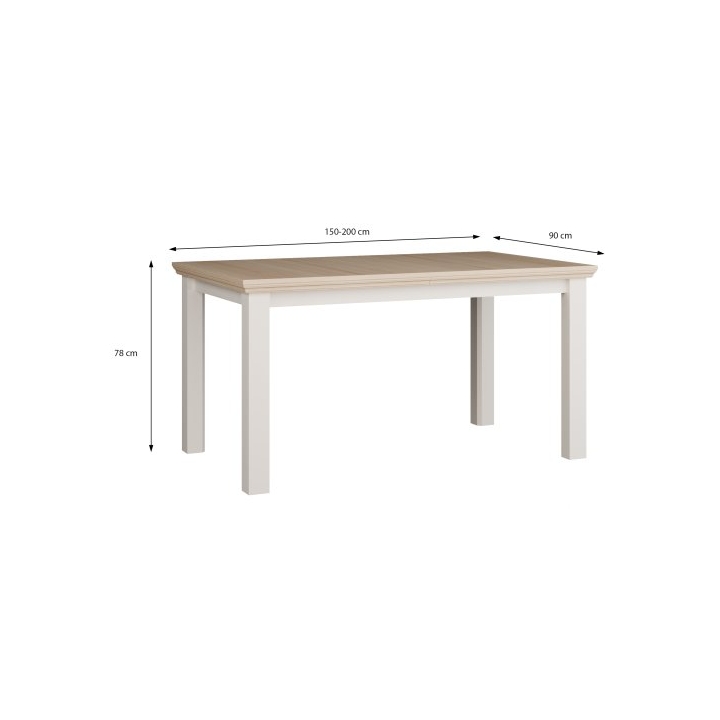 The Pontypool dining table is designed for use in the dining room or living room, created with everyday use and larger gatherings in mind. In its standard version, the tabletop measures 150 cm in length, and thanks to the extendable function, it can be expanded to 200 cm. The table has a depth of 90 cm and a height of 77 cm.