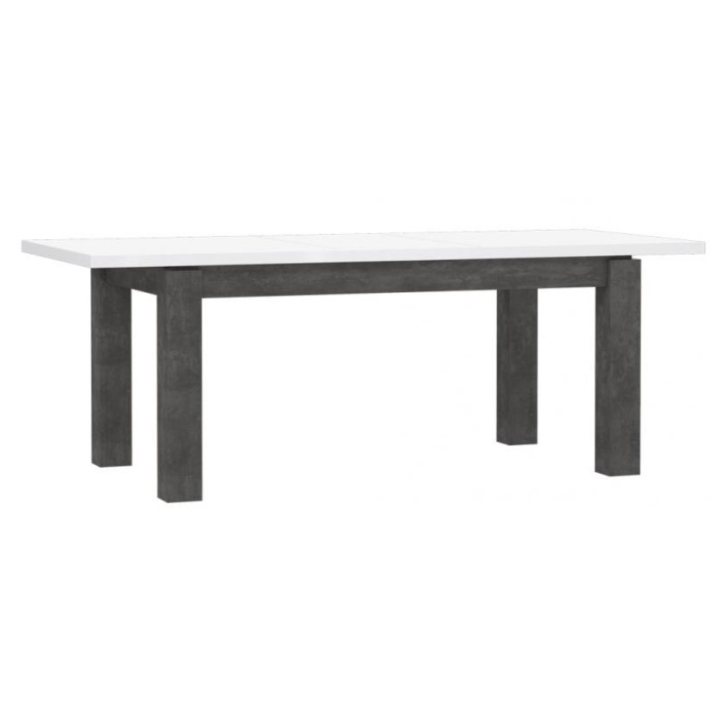 The extending table from the Lennox New collection by Forte is a standard rectangular breakfast or coffee table, which is given a modern style by the colour combination characteristic of the Lennox New collection. The contrasting base and legs finished in a grey concrete decor harmonise perfectly with the white top. This functional piece of furniture will perfectly complement the interior of both a larger and smaller living room and any room with a dining corner. The table from the Lennox New collection is made using a proven method with the use of veneered furniture board. An additional feature of the table is the retractable insert, which allows us to increase the size of the table top by as much as 47 cm when hosting a larger number of guests.