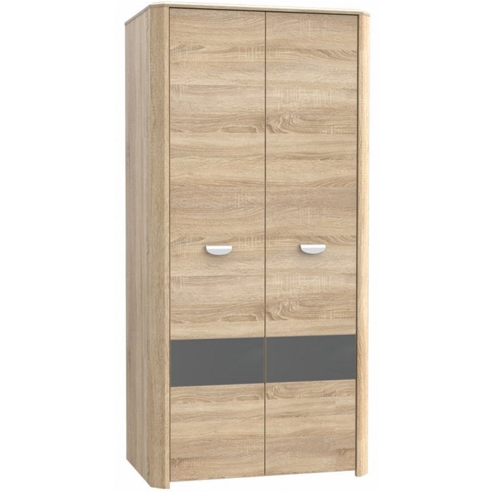 The wardrobe wardrobe model YPS82 from the Yoop collection by the manufacturer Forte is a classic, two-door wardrobe with a bar and a shelf in a modern and fashionable design. The entire width of the wardrobe has a practical bar for hangers, thanks to which you can easily organise dresses, shirts, outer garments. The upper shelf allows you to store wardrobe accessories that you use less frequently. On the bottom you can additionally store, for example, sports shoes or a gym bag. Capacious and simple in design, the wardrobe provides plenty of storage space. The side bevelled edges of the wardrobe body, in the characteristic way of the Yoop collection, emphasise the modern character of the furniture.