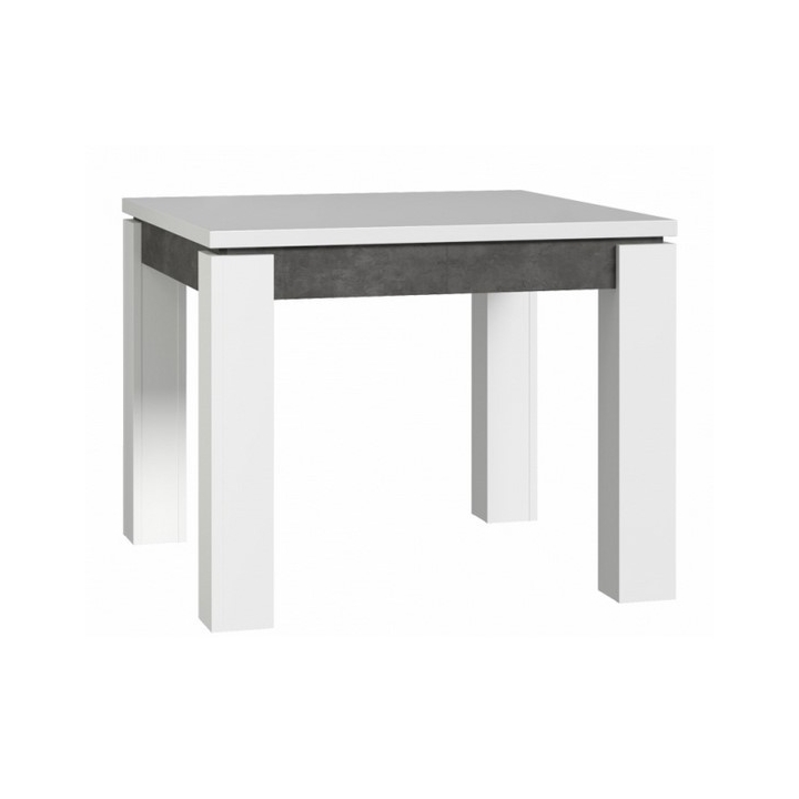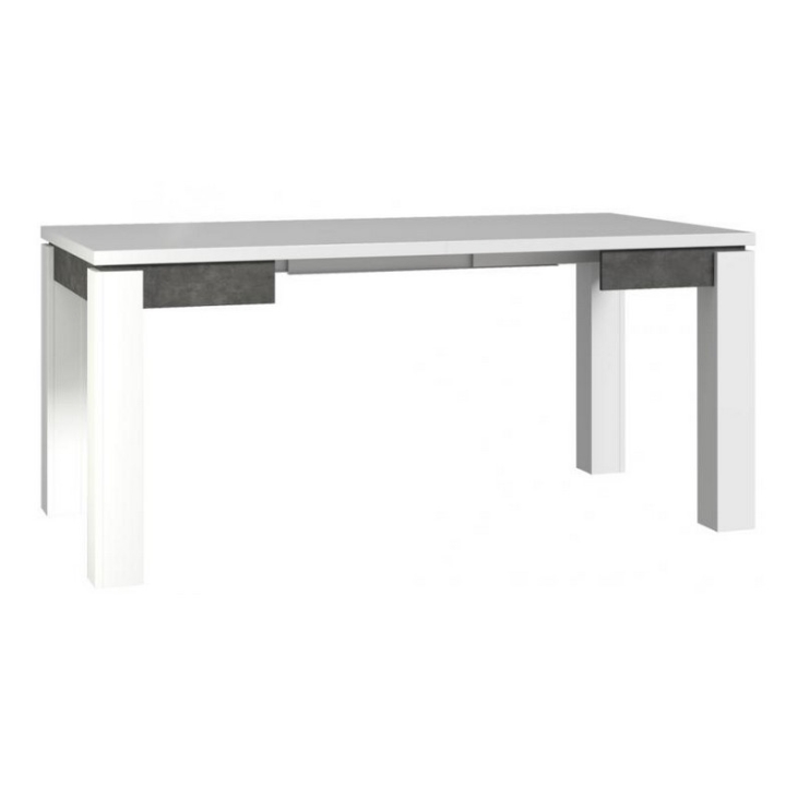 The EST45-C639 extending table from the Brugia collection by Forte delights with its simplicity. The table top and legs in glossy white broken with dark grey concrete are reminiscent of minimalist arrangements from Scandinavia or modern industrial style. A piece of furniture that almost doubles in size when unfolded (from 90 to 180 cm) will undoubtedly be a great choice for a dining room or a room where meals are eaten.