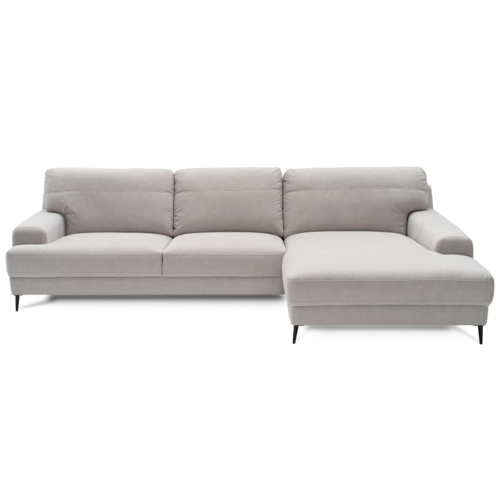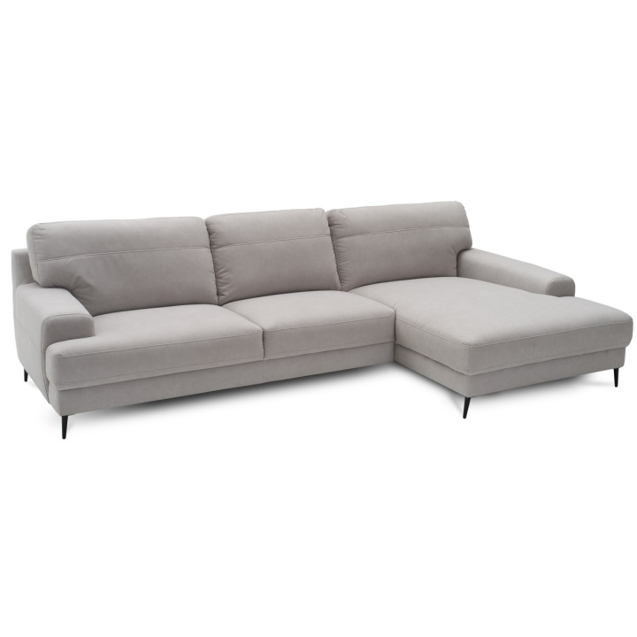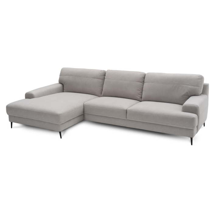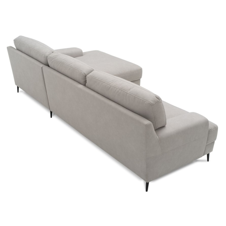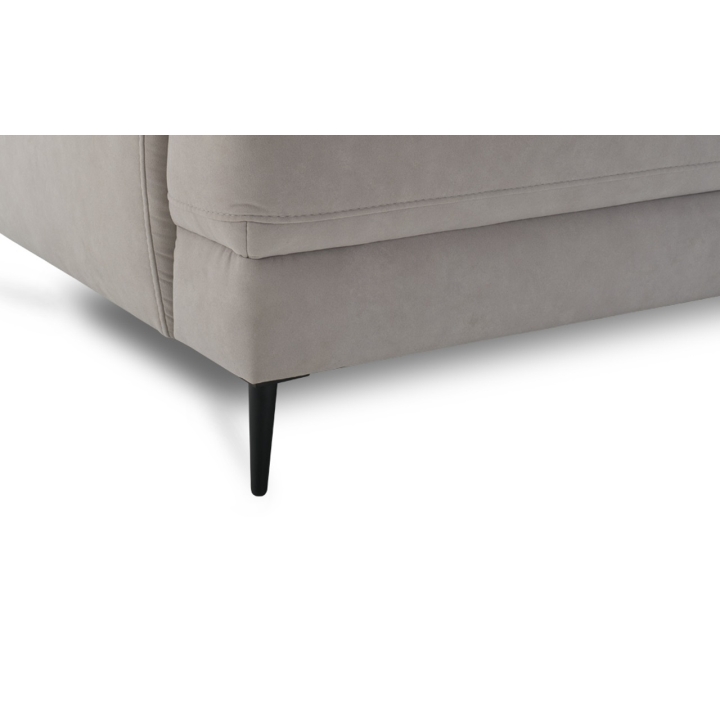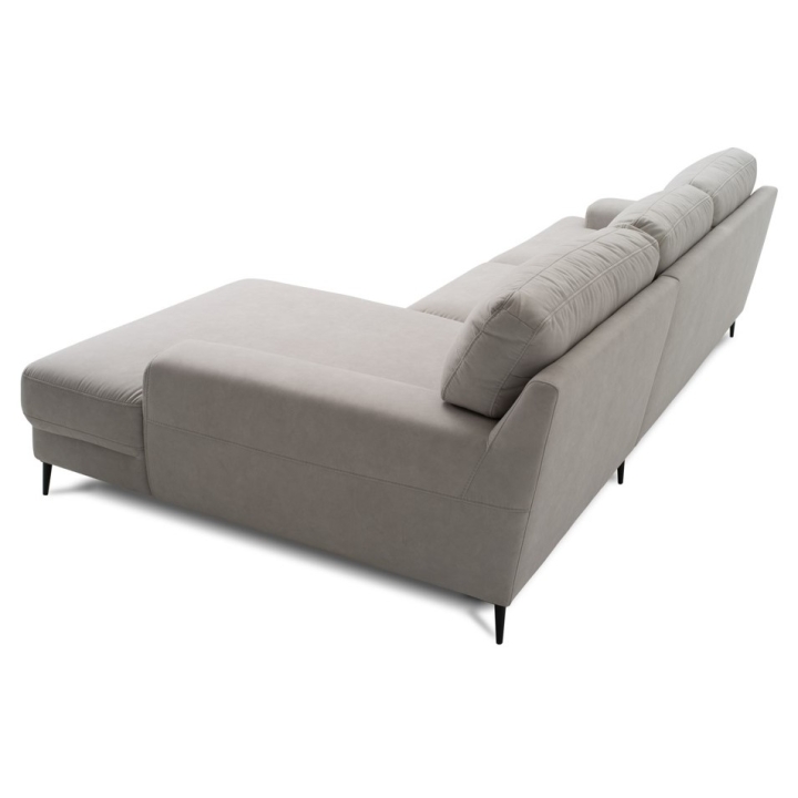 Equipped with a seat made of high elastic foam and corrugated springs, the corner sofa guarantees comfort and durability of use. The backrest with top elastic and elastic straps further enhances comfort. The slender legs are available in a metal version in matt black or in a wooden version with a silver angle in a wide range of colours (see the seller for details).