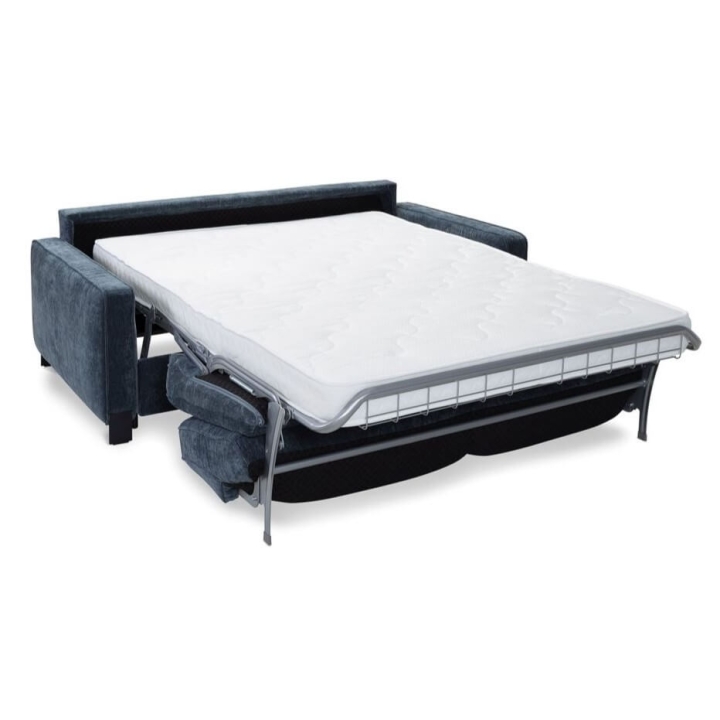 Equipped with the Italian system with wooden slats, the sofa can be quickly and easily transformed into a sleeping area. The Italian mechanism(ITALIAN RESTRAINT PLUS) enables quick and easy unfolding . It consists of a metal frame, wood slats, upholstery straps and a lattice-shaped metal element. When unfolded, the seat and backrest are hidden under the frame. The mattress is attached to the frame with clips. Its thickness is 12cm. It is made of polyurethane foam, which adapts evenly to all parts of the body. The cover is made of Hydro Action fabric, which has properties that prevent the growth of dust mites and mould. This ensures hygiene and will last for years.