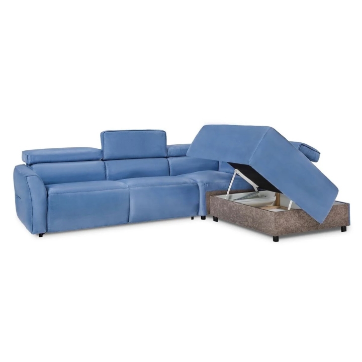 The Nola 2(140)FF-EN(2)-KE(60)S PRO corner sofa by Gala Collezione is a modern piece of lounge furniture that will be perfect in the living room as a place to relax for the whole family. The corner sofa measures 265 cm wide, 217 cm deep and 79-99 cm high. The seat is 61 cm deep and its height is 47 cm. Thanks to the sleeping function with the Italian PLUS frame mechanism, the corner sofa can be easily transformed into a comfortable bed with an area of 120x196 cm. The integrated bedding container allows for convenient storage of quilts or pillows, adding to its possibilities. Adjustable headrests allow you to individually adjust the height of the backrest, guaranteeing comfort when relaxing.