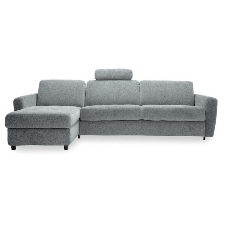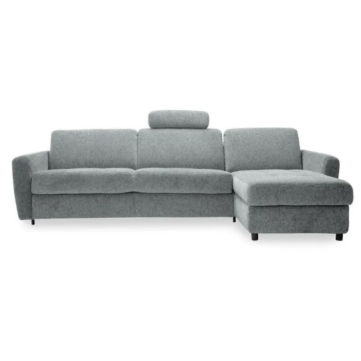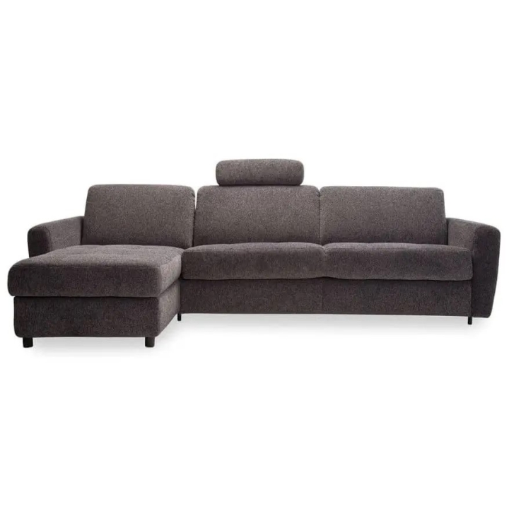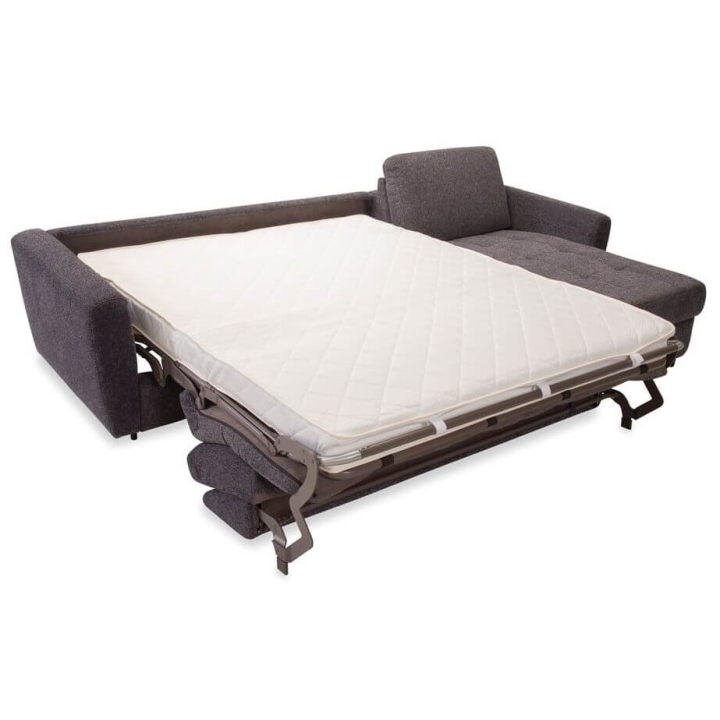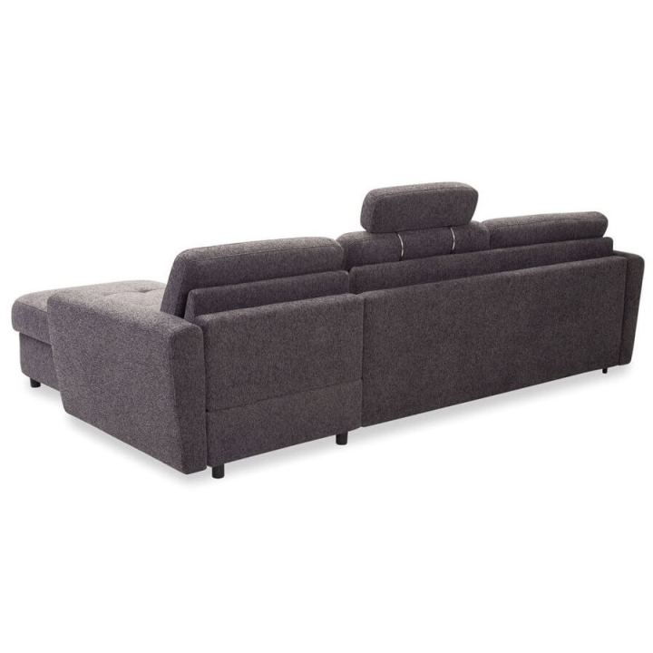 Equipped with an advanced Italian plus frame, the corner sofa offers a comfortable 160x196 cm sleeping function. The mechanism made of metal components, wood-based slats and upholstery straps is a guarantee of reliability. The 12 cm thick mattress, covered with Hydro Action fabric, has properties that reduce the growth of bacteria, raising the standard of use. The mattress is made of polyurethane foam which adapts to all parts of the body and is attached to the frame with clips, which prevents it from moving when unfolded.