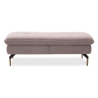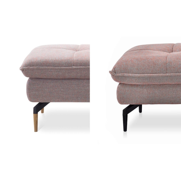 Witha width of 145 cm, a depth of 76 cm and a height of 49 cm, the pouffe is equipped with a seat made of high-flexible foam on corrugated springs, providing exceptional comfort. The choice of upholstery from a wide range of fabrics and natural leathers allows the pouffe to be perfectly matched to different interior arrangements. The 20 cm high metal legs, available in black or in a combined version with wood, emphasise the modern character of the furniture and make it easy to keep tidy.