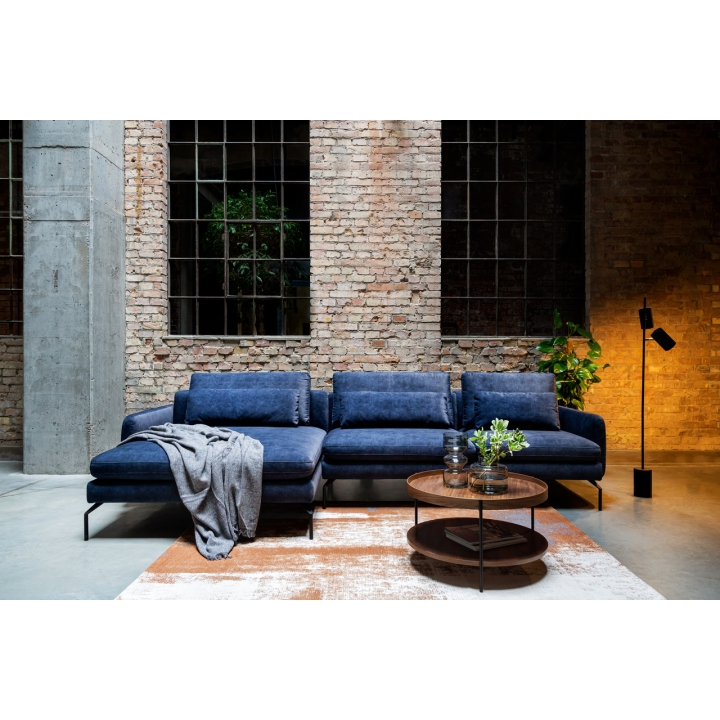 The Look BL-1D80(1)BB-1(80/80)BB-1(80/80)BB-BP corner sofa with the dimensions width 269cm height 72-85 cm, depth 183 cm, seat height 48 cm by Gala Collezione is a modular corner sofa in a modern style, available in a left or right-handed version. Thanks to the high metal legs (20 cm), including the option with wooden elements, the corner piece gains lightness and fits in with industrial arrangements. The upholstery is available in fabric only, with a choice of colours. The furniture is equipped with 3 backrest cushions made of high elastic foam and silicone and 3 under-pads filled with silicone, which ensure comfort during everyday use. The height of the furniture is 72 cm without cushions and 85 cm with cushion and the seat height is 48 cm, which promotes comfortable rest.