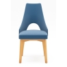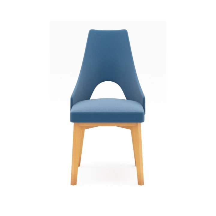Its distinctive feature is the hole in the backrest, which adds lightness to the design and gives a modern look. The upholstered seat, available in leather or fabric, in a wide range of colours, allows you to match the furniture to different arrangements. The choice of thread colour gives additional personalisation options, emphasising the aesthetic detailing.