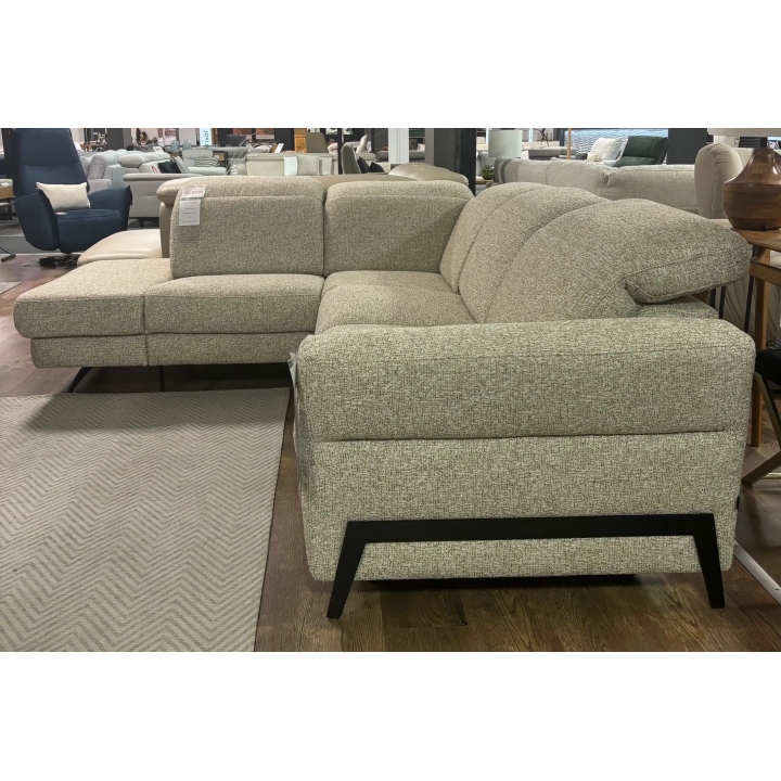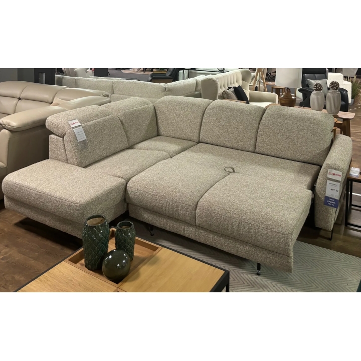 The 270 cm wide and 230 cm deep Volta BOK+2(140)FBB+EN(2)+1(70)TVBBe+DOST S Gala Collezione corner sofa is a ready-made modular corner configuration. The ready-made combination from the photo was made in Corbett easy-cleaning and water-repellent fabric, while you can choose another fabric or colour in our configurator. The furniture combines a modern form with the comfort of everyday relaxation and additional amenities. The height of the corner sofa is 86 cm with the headrests lowered and 106 cm with them raised, allowing you to adjust the backrest to a sitting position. The sofa module uses the B leopard sleeping function, which allows the furniture to be quickly unfolded for sleeping.