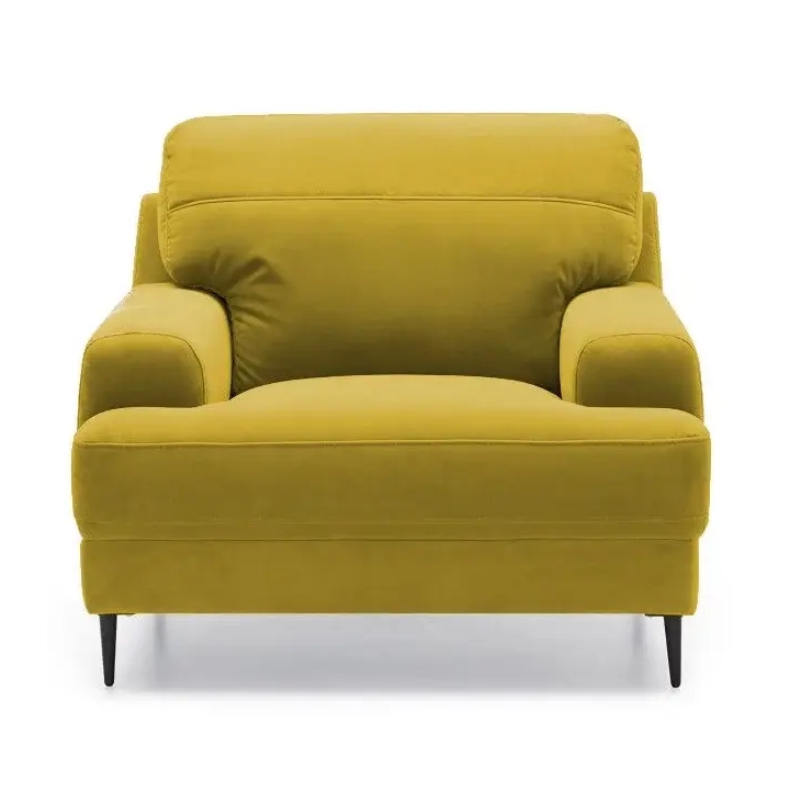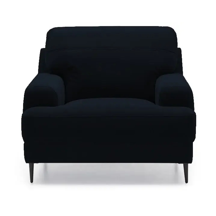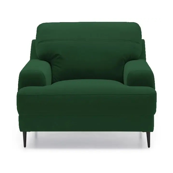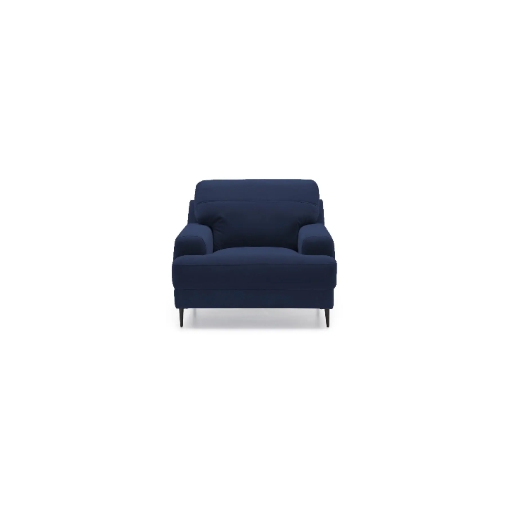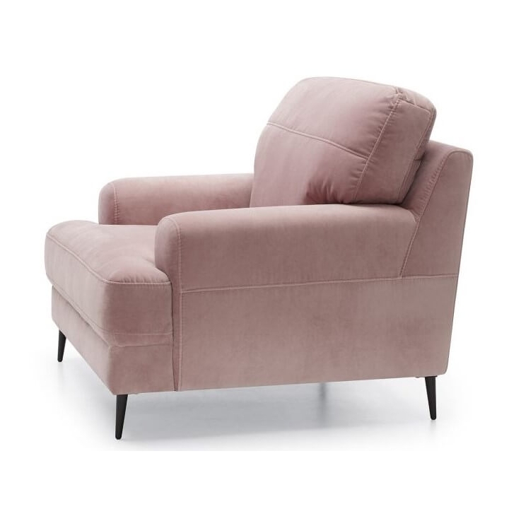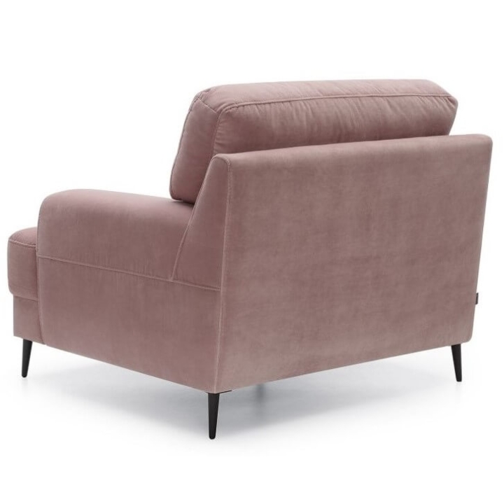 The seat of the armchair is made of high elastic foam and corrugated springs, which guarantees incredible comfort. The backrest with top elastic elements and elastic straps provides comfortable support for the back, adapting to the figure. The whole is supported by high, solid legs, available in a metal version in black or in a wooden version with a silver angle (ask your salesperson for details), which gives the furniture its lightness.