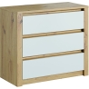 The modern chest of drawers from the Malta collection is a practical piece of room furniture that will help you keep things tidy. The furniture will definitely find its way into many rooms, whether in the bedroom, living room or study. The chest is equipped with three capacious drawers, in which you can store a lot of things. The strong structure of the furniture was made on the basis of a furniture board resistant to damage and sunlight. It is coloured in artisan oak and white. The juxtaposition of two fashionable colours will make your furniture look modern.