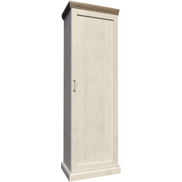 The Royal wardrobe is a high quality product, made of durable laminated board resistant to scratches and sunlight. The colour scheme in shades of white and grey, combined with a brushed wood and wild oak motif, will emphasise the classic and stylish aspect of the interior. The elegant handles and beautiful milling, which are the crowning element of the excellent design of the furniture, are perfectly presented here. The wardrobe has a spacious storage area. It has been equipped with four capacious shelves, which allow for the segregation of clothes or household items. The attractive form and high-quality workmanship make the furniture an extremely stylish piece of interior equipment.