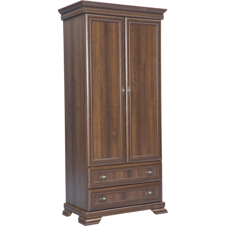 Are you dreaming of a stylish wardrobe that refers to the classic style? Choose a model from the Kora collection! You can comfortably accommodate a wardrobe, which you will place on the bar or in neat drawers. It is worth noting that the furniture looks natural due to the colour of the wood in various options to choose from. Presented model stained in the shade of samoa king refers to the colour and natural structure of wood, which allows you to create cosy arrangements. The Kora wardrobe will give a unique look to any interior while providing plenty of storage space. A delightful carved frame or stylised yet comfortable handles are elements that add a tasteful finish to the piece.