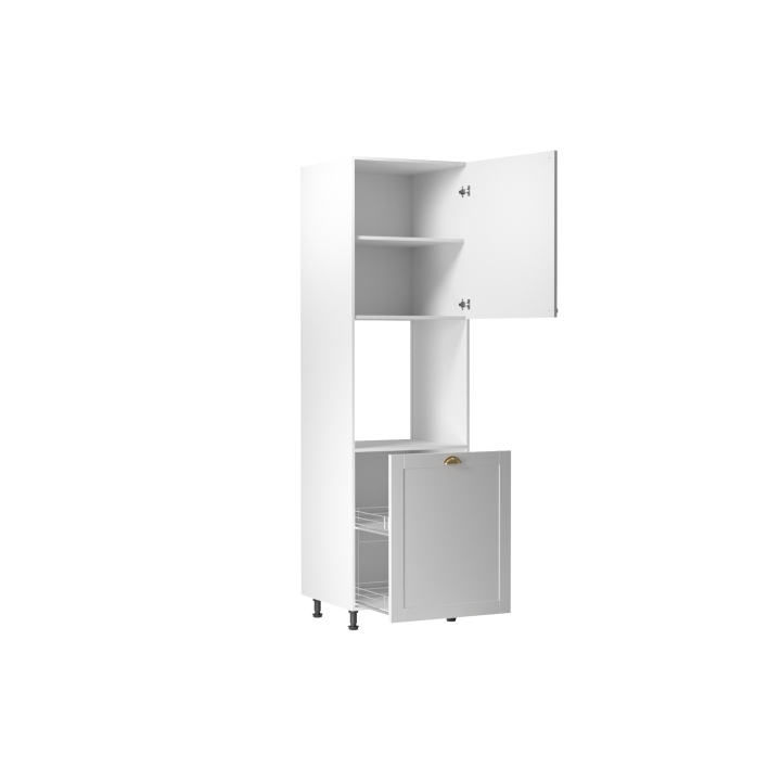 Do you want to combine oven space with extra storage space? The D60P standing tall cabinet from the Linea series is a hit! Planned with the oven in mind, it also has a cargo drawer for even more functionality. Its modern design will blend in with any interior. Practicality and style in one piece of furniture!