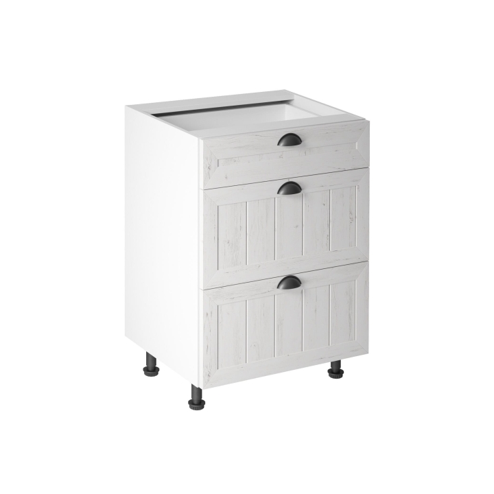 Is the D60S3 Base Cabinet with three drawers Provence the right solution for your kitchen? This functional piece of furniture offers plenty of storage and organisation thanks to its three drawers. The Provençal style and delicate decoration give it a unique charm that brings elegance to the kitchen. The D60S3 base cabinet with three drawers Provence is not only a storage space, but also an aesthetically pleasing decorative element that brings unique charm and practicality to your kitchen.