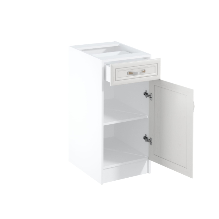 Is the D40S1 Base Cabinet with one drawer Sicily what you need in your kitchen? This piece of furniture offers storage space for a variety of kitchen items thanks to its single drawer, while adding Mediterranean charm with its Sicilian style. One drawer provides practical space for organising crockery and accessories. The D40S1 base cabinet with one drawer Sicily is a combination of functionality and aesthetics that will bring unique charm and practicality to your kitchen.