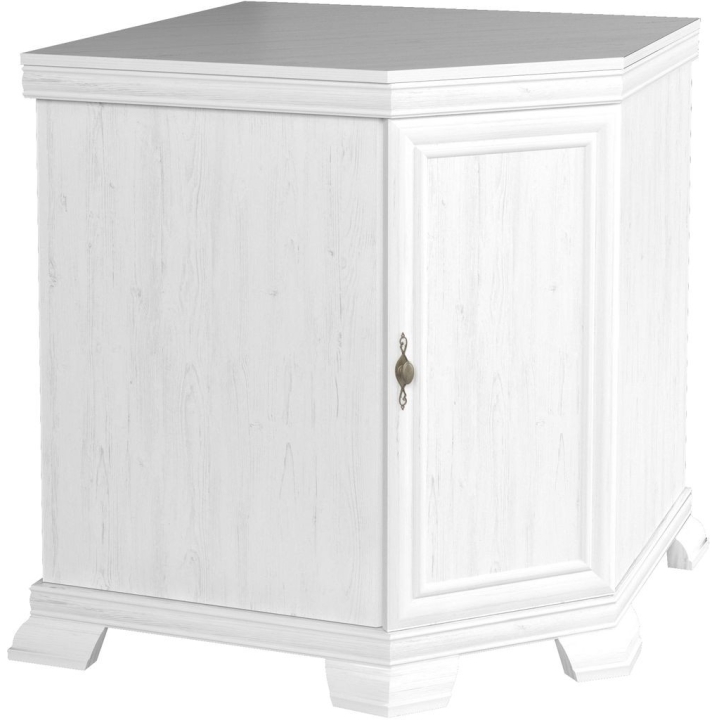 The corner chest of drawers from the Kora collection is a stylish piece of furniture that will help you manage the space in your room. The furniture is equipped with a practical cupboard and makes a perfect duet with an extension from the same collection. Attention is also drawn to the stylish colouring in the shade of Andersen pine, which adds an elegant finish to the piece. In addition, the furniture's striking appearance is also due to the decorative handles. The Kora collection provides furnishings for an elegant living room, bedroom, dining room or study. The combination of symmetry and style balance will emphasise the gallant character of any arrangement.