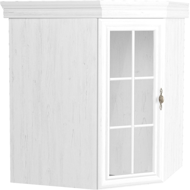 The corner extension from the Kora collection consists of a single door glazed section. Inside behind the front there are two shelves. The presented model of the corner top is combined with the Kora chest of drawers to form a display cabinet. It is sure to appeal to the refined tastes of all those who appreciate timeless beauty and classic elegance. Decorative fronts with matching handles, solid construction and tasteful finials are the characteristic features of the extension unit. It is made of laminated board with increased resistance to damage, moisture and high temperatures. The colour of Andersen pine adds an elegant finish to the unit. The collection comes in three colour options, allowing you to match it to the vision of the arranged interior.