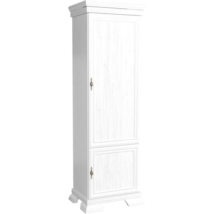 The one-door wardrobe from the Kora collection consists of a two-door section. Inside, there are three shelves behind the upper front. The wardrobe provides plenty of storage space while helping you to keep the room tidy. The wardrobe is made of laminated furniture board with increased resistance to damage, moisture and high temperatures. The wardrobe is stained in Anderson pine, which adds a tasteful finish to the piece. Decorative fronts with matching handles, solid construction and tasteful finials are characteristic features of the furniture. It is sure to appeal to the refined tastes of anyone who appreciates timeless beauty.
