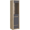 The showcase from the Malta collection is a real must-have in any fashionable interior! Due to its minimalist form, it will fit into almost any décor. The structure boasts decorative glazing, behind which you can place a collection of crystal glasses, porcelain tableware and souvenirs. You can accentuate the impressive design of the cabinet with optional LED lighting. The solid was made of furniture board of high resistance to damage, thanks to which it will present itself aesthetically even after a long time. An invaluable advantage of the product is also the fashionable colour scheme, which is a combination of Artisan oak and smooth grey.