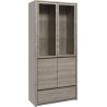 The two-door showcase from the Montana collection is a piece of furniture for those looking for functional furniture characterised by modern design. Montana display cabinet is an excellent look! Its charm lies, above all, in its simple form without unnecessary, protruding handles and in effective colours referring to the beauty of natural wood. Truffle oak is a universal colour, which suits rooms of different styles. It can be successfully combined with walls in both light and dark colours. The display cabinet has a capacious interior and practical shelves, which no matter what you decide to put here, the glass front will enable you to nicely display every trinket, even the smallest ones. High-quality workmanship made of scratch- and sun-resistant laminated board guarantees that the proposal will last for many years. In addition, you can emphasise the charm of the display cabinet by purchasing LED lighting.