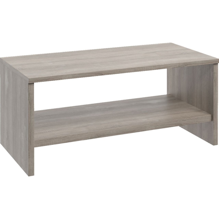 The coffee table from the Montana collection is a piece of furniture ideally suited to both classic and modern interiors. The table is made of high quality particle board, laminated with a visible texture of wood. The stable construction and high quality components ensure that the furniture is scratch resistant. Truffle oak is a universal colour, which suits rooms of different styles. It can be successfully combined with walls in both light and dark colours. The table with its geometric form has a practical shelf located just under the top, which will provide space for storing things - remote controls, magazines....
