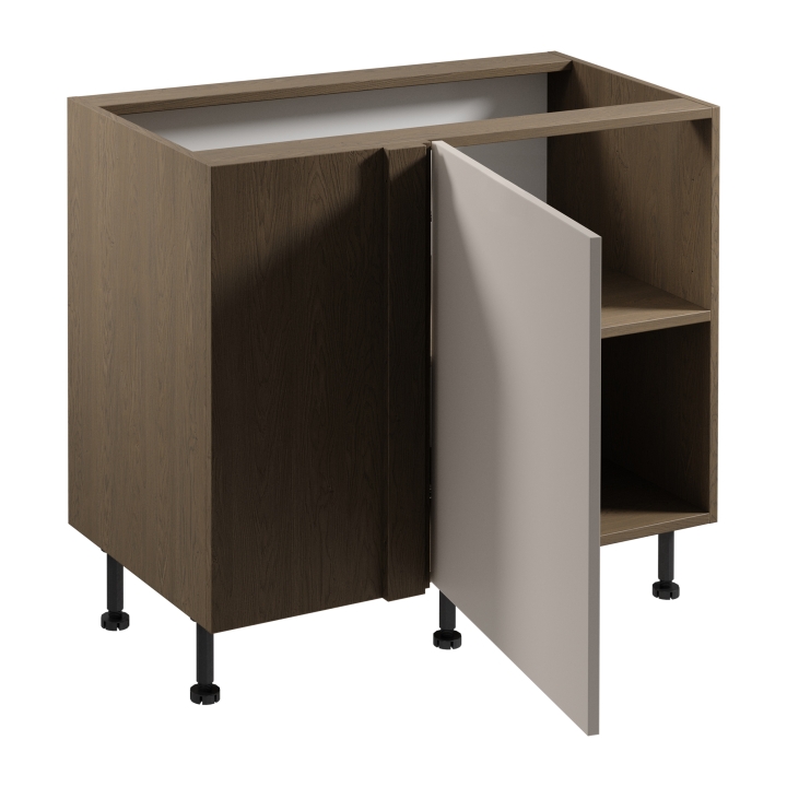 The Sorento D100N P/L base cabinet is a corner model with a simple layout, designed for kitchen built-in. The body made of 18 mm thick laminated board is characterised by increased resistance to mechanical damage. The interior of the cabinet is equipped with one shelf, which allows the division of storage space.