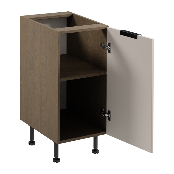 The Sorento D40 P/L base cabinet is a kitchen built-in element designed to be installed on the left or right side - depending on the arrangement needs. The carcass is made of 18 mm thick laminated board, resistant to mechanical damage, which ensures durability and solidity of the construction in terms of everyday kitchen use.