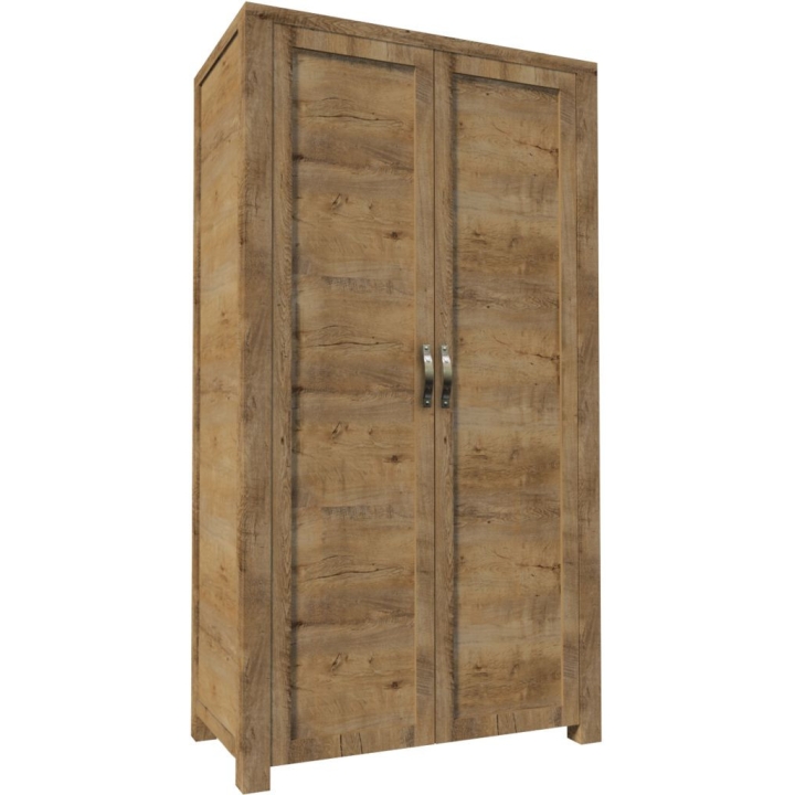 The two-door wardrobe from the Nevada collection is an original piece of furniture, surprising with its modern, exotic style. The solid is characterised by stylish, metal handles, massive line and interesting colouring in dark oak lefkas. The furniture is also distinguished by such elements as solid legs and thickened frames. The wardrobe has a very rich interior, which guarantees us enough space for outerwear, everyday or formal clothes. The Nevada wardrobe is also a solid piece made of durable and scratch-resistant laminated board. NEVADA is a collection of unusual living room furniture, inspired by travels around the world, through different continents, from east to west.