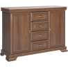 The stylish chest of drawers from the Kora collection is the ideal choice for lovers of classic style. The chest of drawers will help you keep order and tidiness in the room. It is equipped with two capacious cabinets and drawers. Such a structure will allow you to organise many useful things. The furniture is not only functional, but also serves as an excellent decoration. It is worth emphasising that the furniture looks natural due to the colour of the wood in various options to choose from. The model presented here, stained in the shade of Samoa King, adds an atmospheric finish to the piece and gives the room a cosy feel. The Kora collection provides furnishings for an elegant living room, bedroom, dining room or study. The combination of symmetry and style balance will emphasise the gallant character of any arrangement.