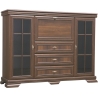 The large chest of drawers from the Kora collection will make your interior beautiful. It is worth emphasising that the piece of furniture looks natural due to the colour of the wood in various options to choose from. The presented model, stained in the shade of samoa king, refers to the colour and natural structure of wood, which, together with the Kora bar, allows you to create cosy arrangements. The furniture is very richly furnished. This is because the furniture includes display cabinets, drawers and a bar segment. With such a capacious and practical interior, you will gain a lot of space to store various things. The elegant character of the unit is also due to the stylish frame and tasteful handles.