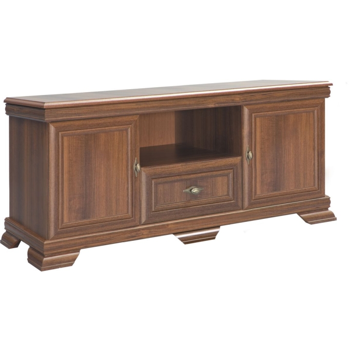 The RTV cabinet from the Kora collection is a charming product that delights with its stylish design. The elaborate decorations, handles matching the style of the furniture and massive, carved legs create the unique character of the furniture. The cabinet is equipped with a capacious drawer, two closed cabinets and a recess. The Kora RTV cabinet will perfectly complement your TV corner, making it elegant and practical. It is worth noting that the piece of furniture looks natural due to the colour of the wood in various options to choose from. The presented model stained in the shade of samoa king adds an atmospheric finish to the piece and gives the room a cosy feel.