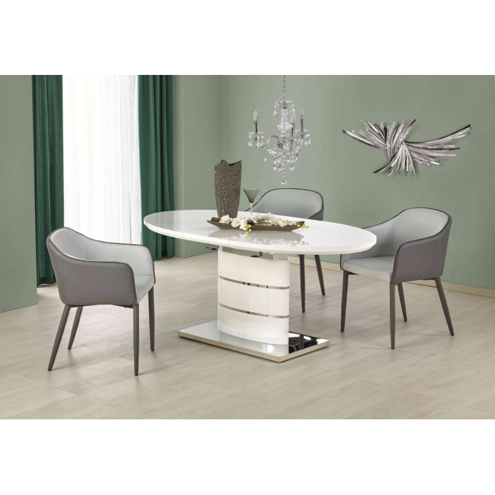 extending table, material: MDF lacquered / stainless steel, colour: white