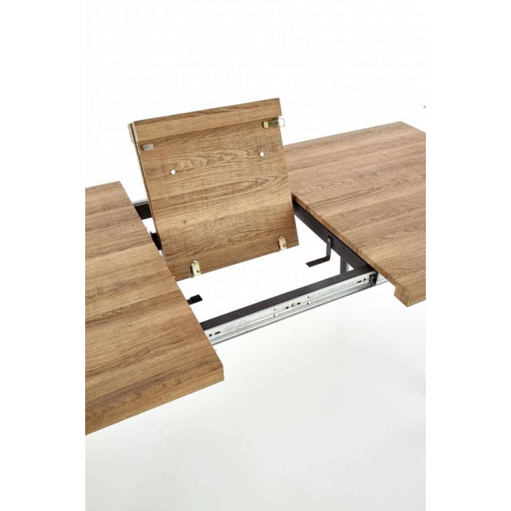 extending table, material: MDF laminated / powder-coated steel, colour: top - honey walnut, legs - black