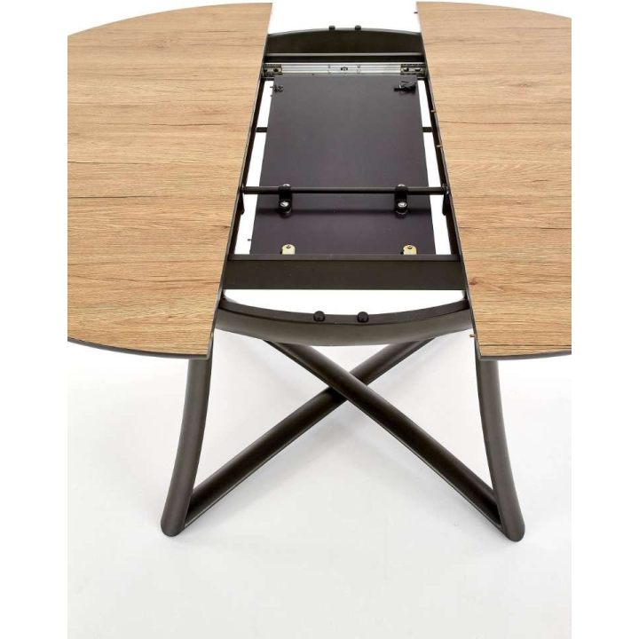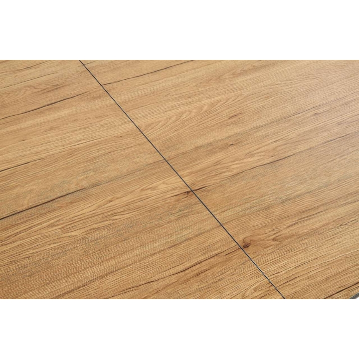 dimensions: 118-148/118/76 cm, folding table, material: MDF laminated / MDF lacquered / steel powder coated, colour: top - golden oak / black, legs - anthracite