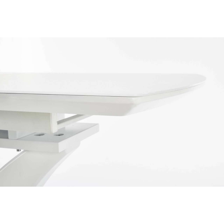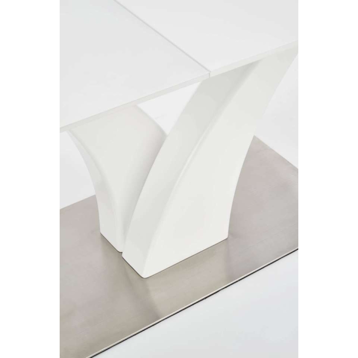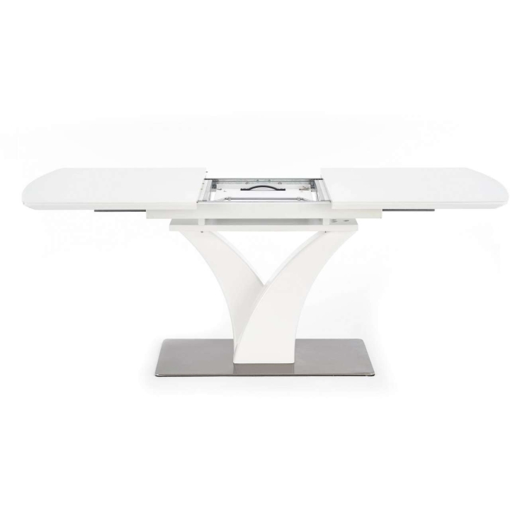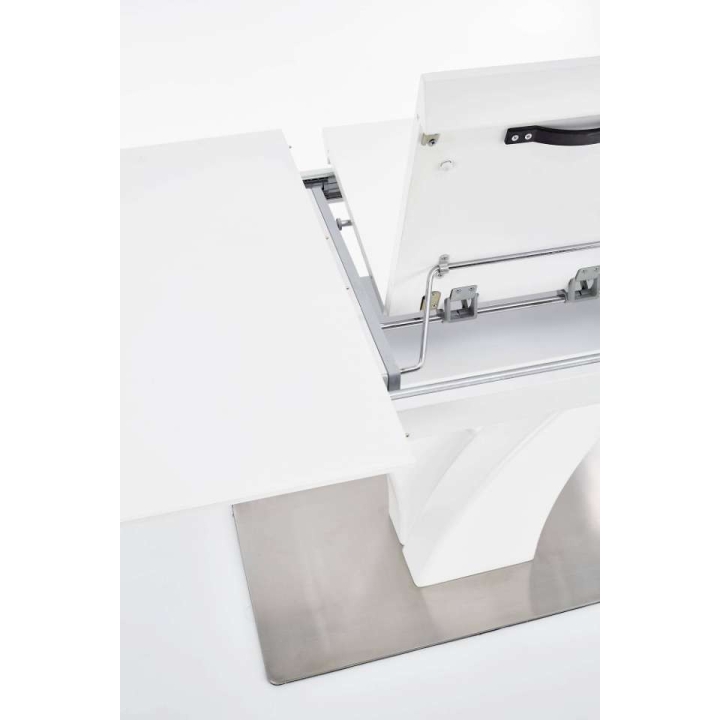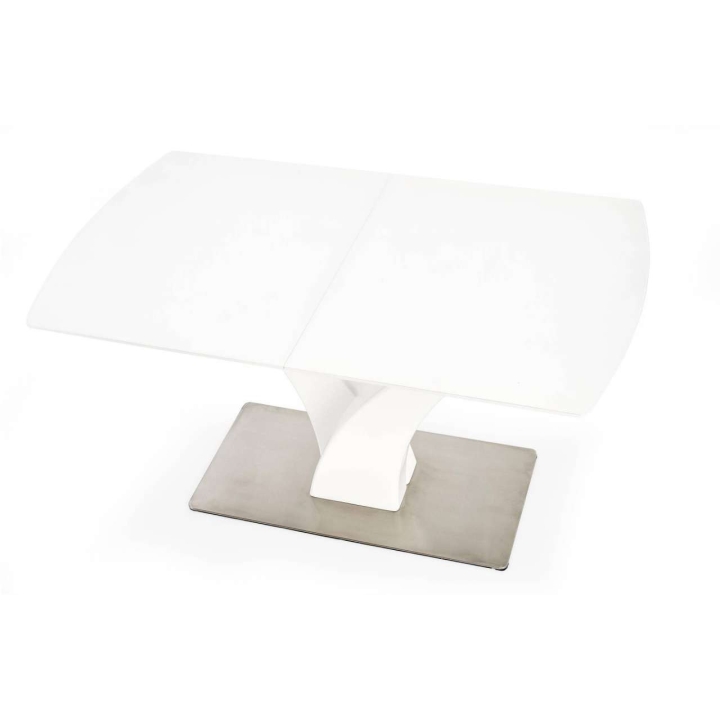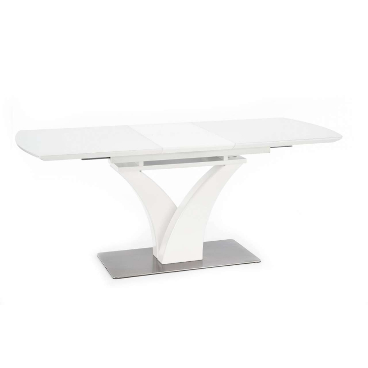 extending table, material: glass / lacquered MDF / stainless steel, colour: white matt