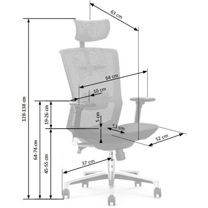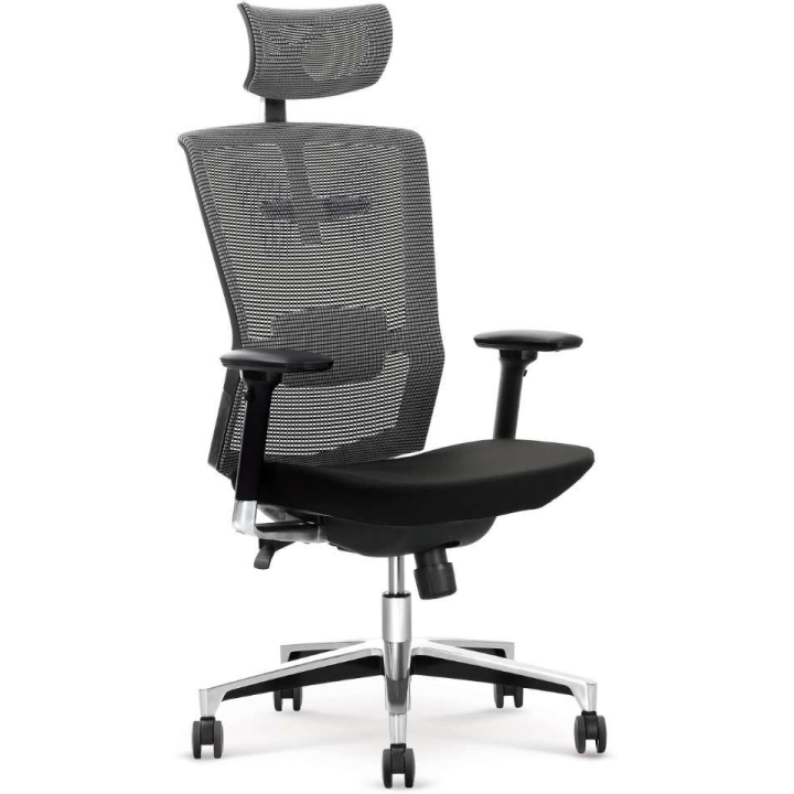 dimensions: 64/63/120-130/45-55 cm, MULTIBLOCK PLUS function / aluminium base / adjustable headrest / adjustable armrests / adjustable back rest, fabric / mesh, colour: black and grey