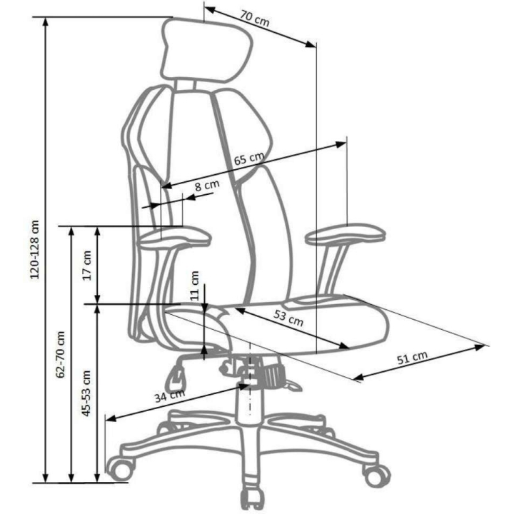 multiblock mechanism, adjustable headrest, dimensions: 65/70/120-128/45-53 cm, dimensions: fabric / eco leather, colour: black and white