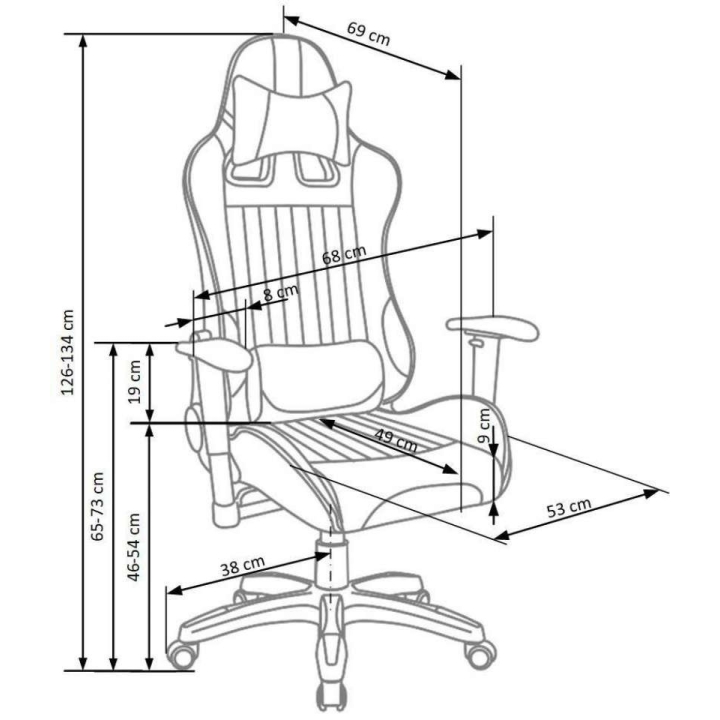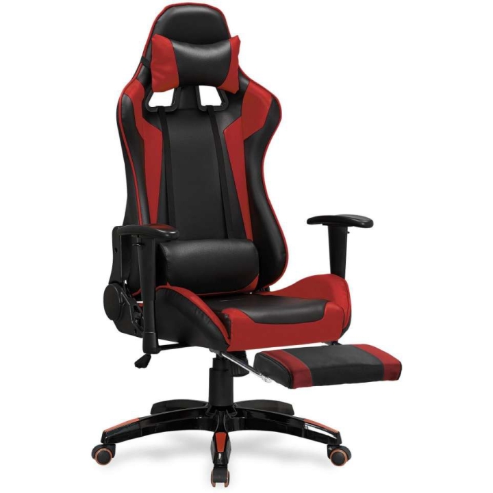 TILT mechanism, adjustable armrests, foldable backrest, dimensions: 55/69/126-134/46-54 cm, material: eco leather, colour: black-red