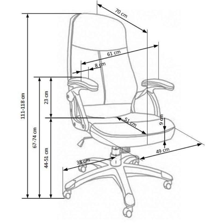 TILT mechanism, rubber-coated wheels, dimensions: 64/70/111-118 cm, material: eco leather perforated, colour: black