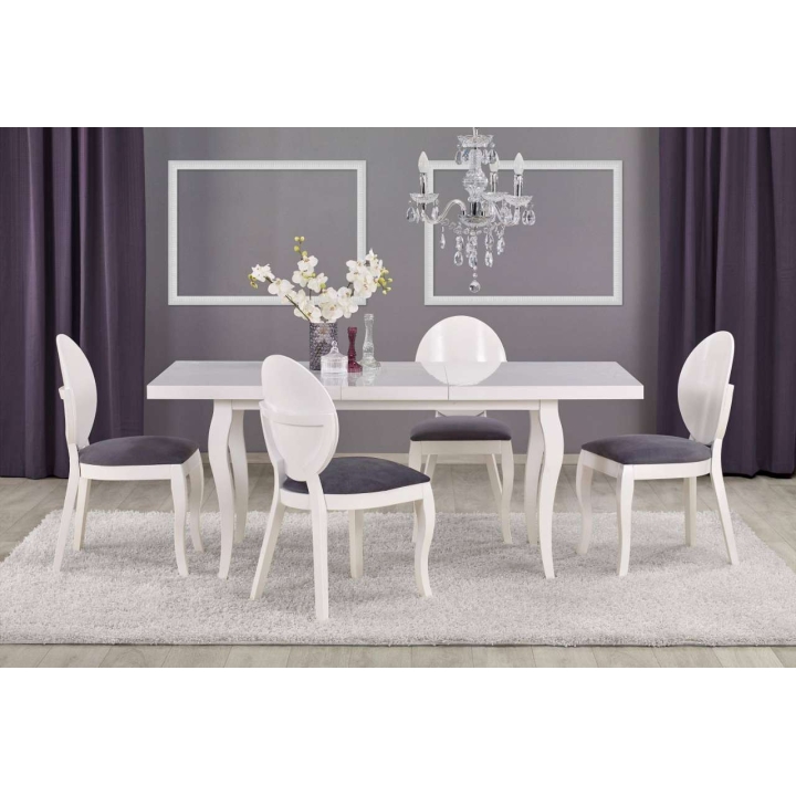 extending table, dimensions: 160-240/90/75 cm, material: top - MDF laminated board + ABS edging, legs - solid wood (beech), colour: white