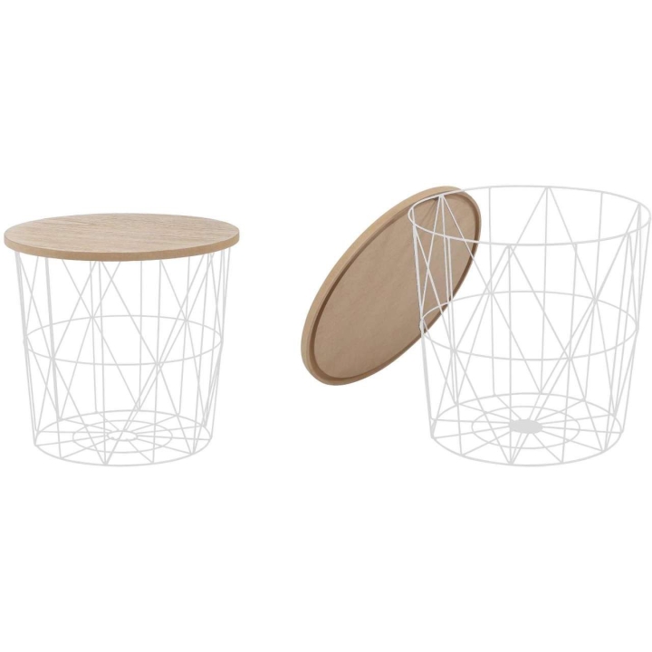dimensions: O42/41 cm, material: MDF + natural veneer / powder-coated steel, colour: natural - white