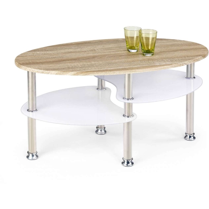 dimensions: 90/50/45 cm, material: glass / MDF laminated / stainless steel, colour: sonoma oak / extra white